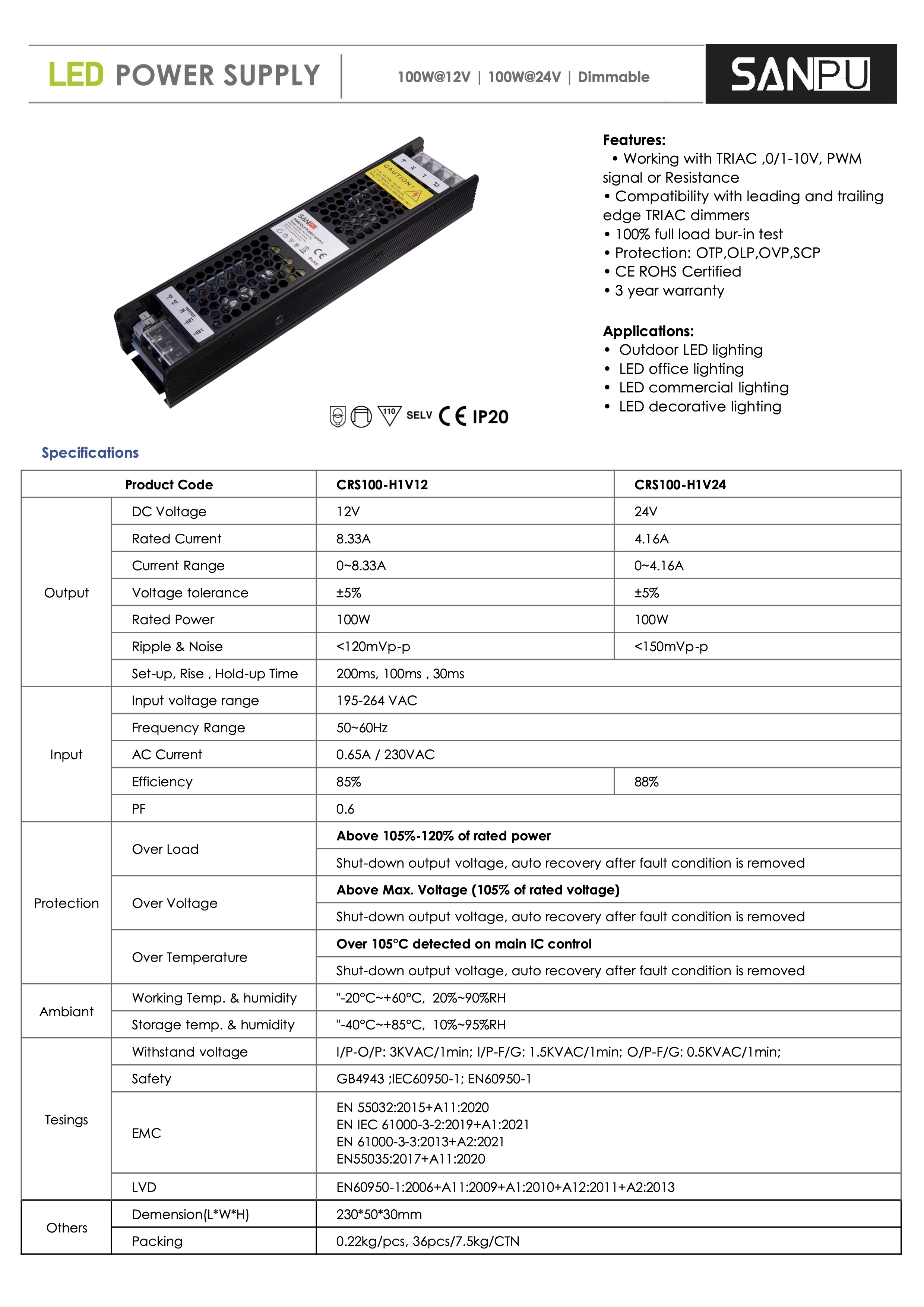 Led Treiber 24Volt 100 Watt,Dimmbar, 2984